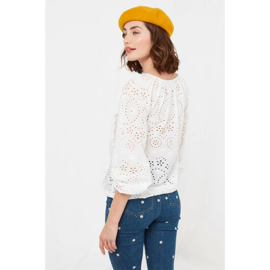 Just what you need for summer, this cotton blouse is beautiful and breathable. We even added a wide neckline and adjustable tie at the hem to achieve that boho vibe. The perfect piece for helping you feel cool and confident all season, just add a pair of our embroidered jeans or shorts to complete this warm weather look.