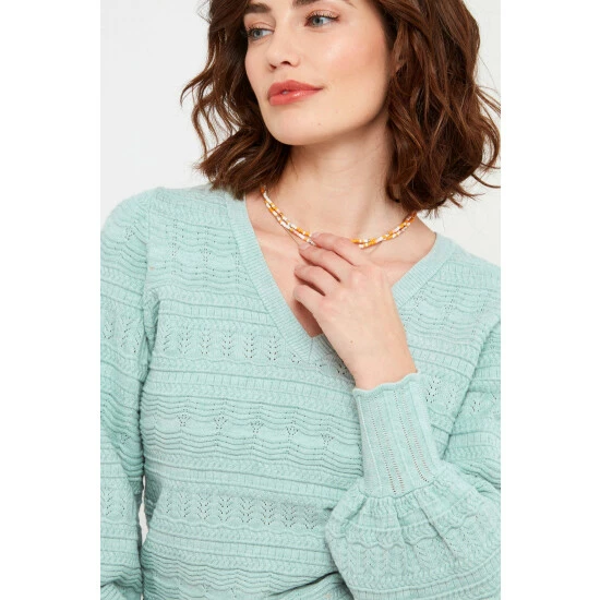 Stylish and sophisticated, this will be your new go-to jumper on cool summer afternoons. Combining a fresh colour with pretty balloon sleeves and cosy cuffs, it has everything you need from a seasonal style, and more. Great for popping on over a blouse or tee, it’ll help you beat the chill on those picnics or walks along the beach.