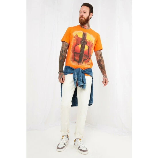 Made for nights around the campfire with a guitar in hand, this short-sleeved tee is perfect for music lovers. In the fiery colours of a seasonal sunset, it’s just what you need to make the most of those warm summer nights. Just add jeans and watch your chill style heat up.