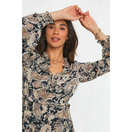 We love a statement paisley piece, and this dress is no exception. The floaty fabric, frilled neckline and shirred detail pull out the print perfectly, creating a flattering, feminine look you’ll love. With darker colours, it’s great for your seasonal clothing collection – just add boots and a jacket to complete this wintery style.