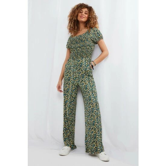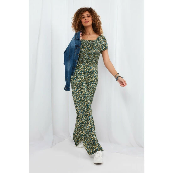 Made for those dreamy summer days, this wide-leg jumpsuit is a must-have for the season. From the gorgeous print to the comfy fabric and shirred bodice, every inch makes it the perfect standout piece for your wardrobe. Finished with short puff sleeves that you can wear on or off the shoulder, it’s versatile, sophisticated and so easy to wear.