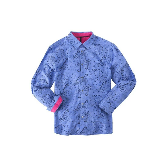 Calling all music lovers! This long-sleeved shirt will go great in your wardrobe. Putting playful music notes and pink trims on such a crisp, chambray fabric, we created a shirt that’s equally smart and casual. Team it with one of our waistcoats for a sophisticated look, or with jeans and a jacket for a more chilled vibe.