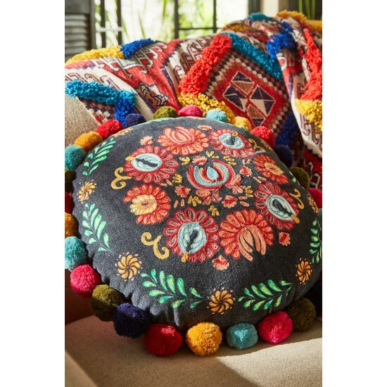 If you’re looking for the perfect finishing touch for your space, this cushion is it. Bold and beautiful with its folky, floral design and multicoloured pom poms, it’s a bespoke JB piece you won’t find anywhere else. Finished in a cosy cotton velvet fabric, it’ll help your vibrant personality shine through your décor.