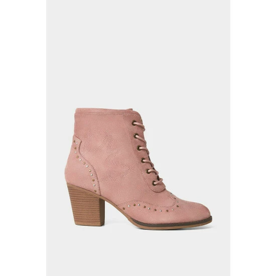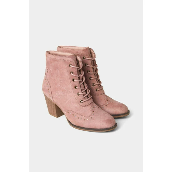 Think country with a touch of glam for these lace-up ankle boots. In a gorgeous dusty pink, they’ll bring an upbeat pop of colour to any outfit this season. We even added embroidery and stud detail to bring that something extra. Whether you wear them with a skirt, dress or jeans, they’re sure to inject new life into all your favourite looks.