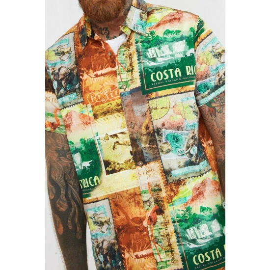 Inspired by our travels, this short-sleeved shirt is designed for your next holiday. Using all the postcards we collected from Costa Rica, we created a totally unique print, then added a sepia tone for that stylish vintage feel. Made for those with an adventurous spirit, it’s easy to wear alone with shorts or open over your favourite tee.