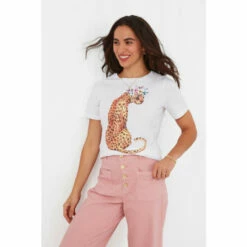 This short-sleeved tee is here to elevate your everyday outfits. So elegant and regal, the lovely leopard will bring a feminine touch to any look, whether you’re wearing jeans and trainers or a pinafore and boots. We couldn’t spot a better tee to complete your spring wardrobe!