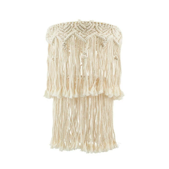 Bring boho elegance into your home with this magnificent macrame light shade. In a stunning chandelier design, this beautifully hand-knotted piece has two tiers to make it a real showstopper. In a gorgeous cream colour that creates a wonderful ambient glow, it’ll bring style and warmth into any space.