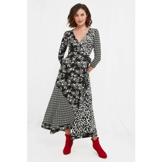 It’s the remarkable mix of prints that make this long-sleeved dress so unique. Finished in a pretty wrap design with a flattering asymmetric hem and a belt to cinch it in at the waist, it’ll make the perfect partner for your favourite knee-high boots. Get ready to step into the season in style!