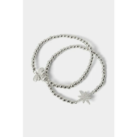 Simple yet stylish, this pack of 2 stretchy bracelets will really stand out against your everyday style. Available in silver or gold, we jazzed up the classic bead design with a bee and star charm, so they’ll bring a lovely boho effect when they’re layered together.