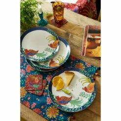 Take a look at these fabulous dinner plates. You’ll love how the bold colours and floral design bring such a vibrant, folky feel to the dining table. The perfect way to show off your unique décor style, we think this set of four looks gorgeous alongside the matching textiles, placemats and mugs in the full kitchen dining set.