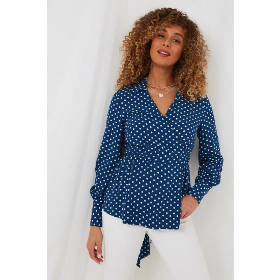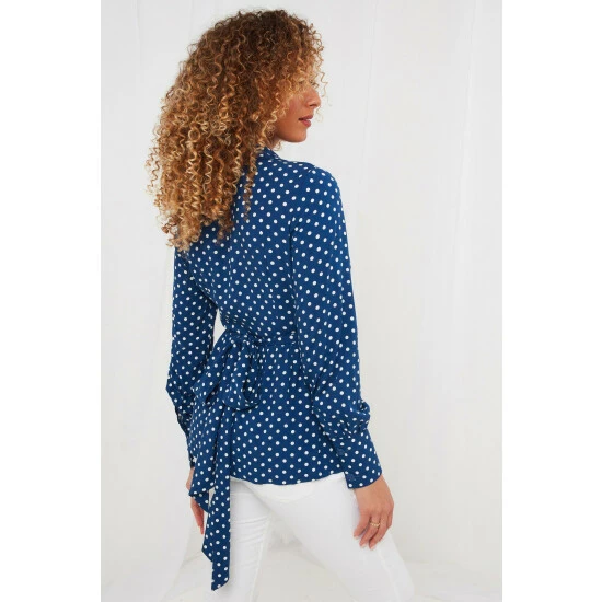 So flowy and graceful, this is the wrap blouse that’ll keep you cool and comfortable all summer long. Featuring a timeless polka dot print and deep, delicate cuffs, this classic piece will bring effortless elegance to any outfit. Try pairing it with our Trixie Spot Skirt and step into summer in real style.