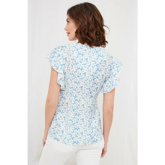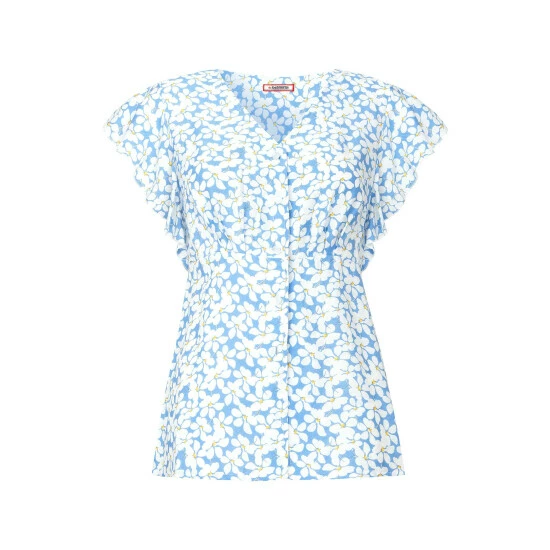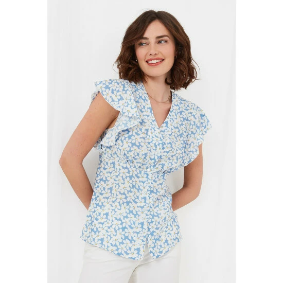 Embrace summer style with this gorgeous V-neck blouse. We love how the pretty florals pop against the light, woven fabric. They’re set off perfectly by the fluted sleeves too, creating a look that’s beautifully feminine. Just add jeans and boots for an outfit you’ll keep coming back to this season.