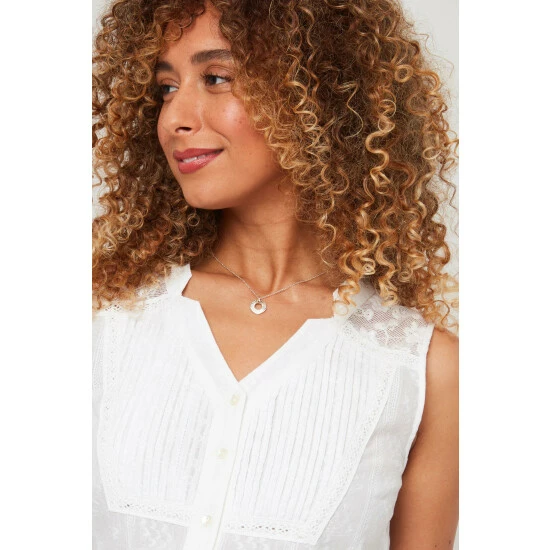 This blouse is just what you need to add some sophistication to your outfit. Bringing together a classic sleeveless design with delicate details on the front, it’s great for the office or summer coffee dates. Not only is it light and airy, but the soft white colour means it’ll pair perfectly with anything.