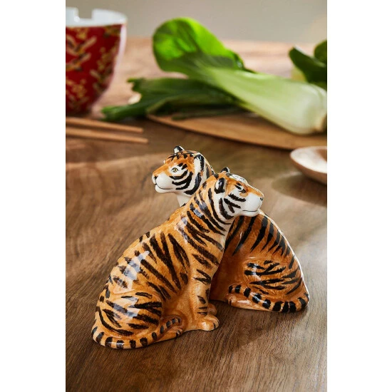 These novelty tiger salt and pepper shakers will certainly bring some fun to your kitchen table. In a roar-some design that’s been beautifully hand painted, this tiger salt and pepper set is bound to be your new favourite dining accessory. Just pair them with the matching utensils jar to bring a coordinated look to your kitchen.
