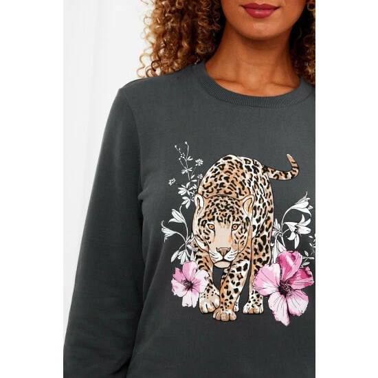 Keep cosy whatever the weather in this fabulous oversized sweatshirt. With bold colours that really pop against the soft, grey fabric, you can enjoy those chilly spring evenings in true style. Pull it on over our Lovely Leopard Tee for a charming, coordinated outfit that’s perfect for the season.