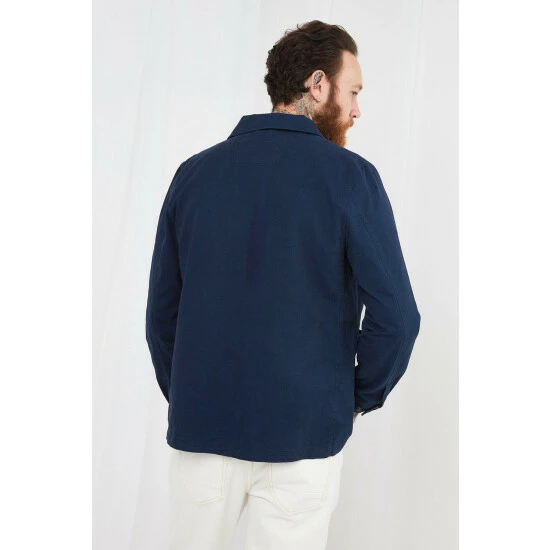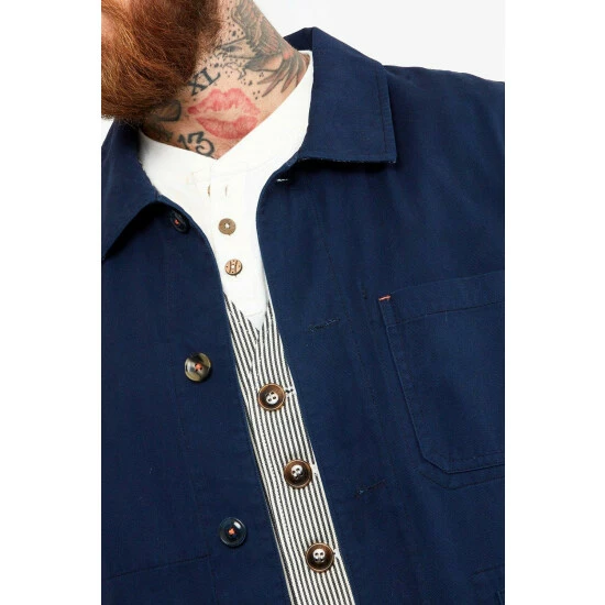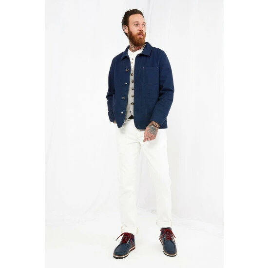 Simple yet stylish, this workwear-inspired jacket is an essential in any man’s wardrobe. With tonal stitching, pops of orange thread and stripe trims under the cuffs, it has plenty of unique details that make it great for smart or casual styling. Try it with one of our workwear blazers for a dapper occasion look.